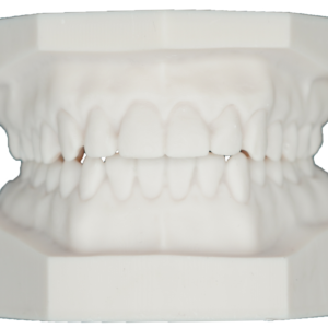 This fixed class ll correction device features stainless steel crowns and cantilever arms for strength. The telescopic portion allows patients to posture forward and function normally, but not retrude the mandible.